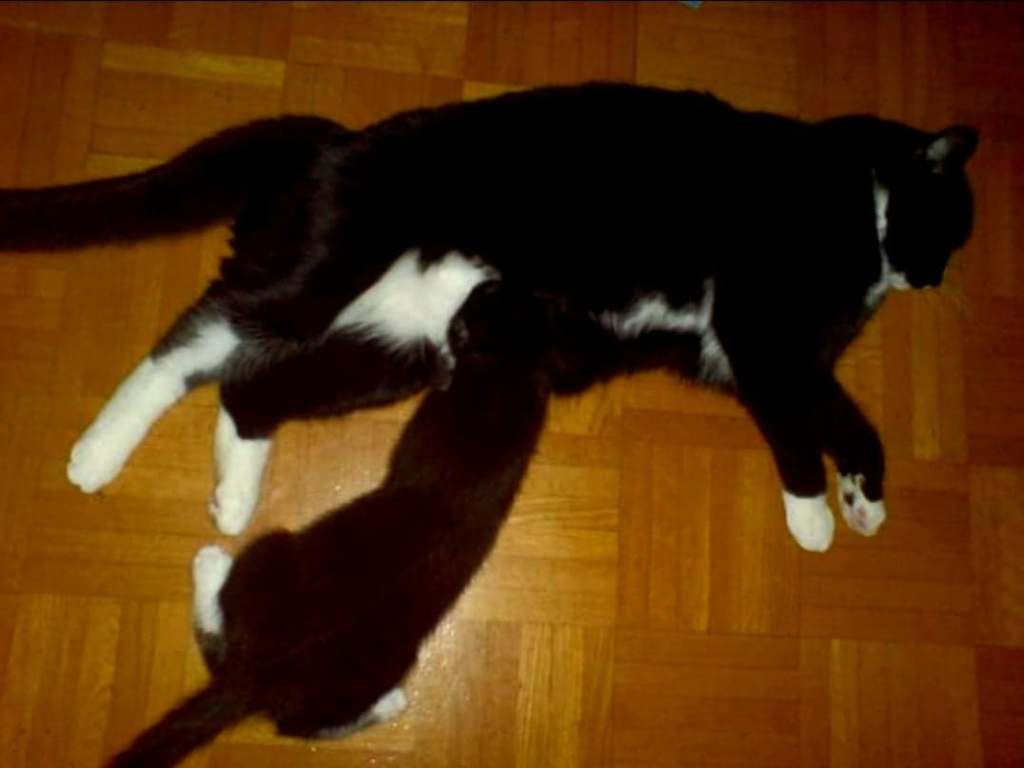 Du fikk en søster et par år etter da jeg jobbet skift og for at du skulle få en leke-kammerat mens min eldste sønn startet på skolen . Det ble Dixie og tro det eller ei, men dere har samme mor…kanskje til og med far, men det får vi aldri vite. Du ble “surugatormor” for Dixie der hun leitet etter puppen hos sin eldre bror og noe fant hun i alle fall for daglig ble det en greie mellom dere til Dixie 6 år seinere dessverre døde på operasjonsbordet etter å ha svelget en plastikkleke og hun ble begravd i hagen til min venninne, hvor planen var at alle dere katter både vi og hun hadde skulle gravlegges…Men så flyttet hun så da ble det bestemt at du skulle i alle fall kremeres og stå på hylla vår, selv om jeg aller helst ville ha stoppet deg ut. Du var og ble min vakre prins… Selv min ex-mann brukte å si at jeg var mer glad i den katten enn han…og det var vel det eneste han hadde rett i… hehehe….og kanskje en grunn til at han er en EX 😉